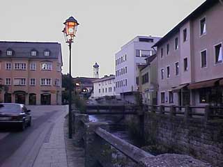 Die Bahnhofstraße mit Blick auf die Stadtpfarrkirche Maria Himmelfahrt |
